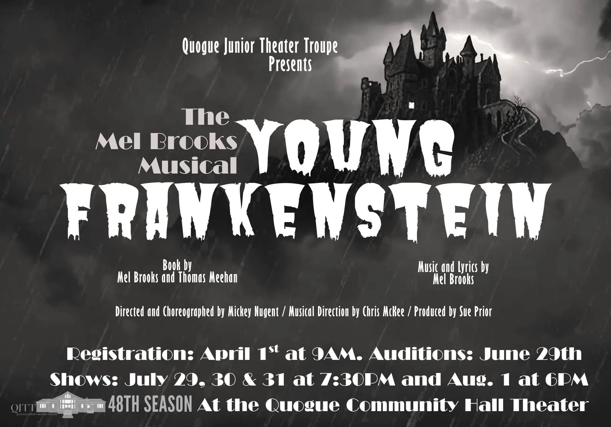 Auditions: Monday, July 29th, 2026, 6PM-11PM, at the Quogue Community Hall Theater, 125 Jessup Ave., Quogue, NY
